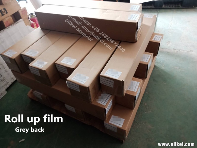 Grey back eco-solvent print advertising stand PVC film display stand film Item Name: Grey back PVC film for display stand Gram: 260g Thickness: 230 mic Size:0.914m/1.07m/1.27m/1.52m Always in stock size: 0.914m and 1.27m*50 , this 2 sizes always in stock, if you need small qty under 60 rolls, can order these 2 sizes. If you have order above 60 rolls need 1.07/1.37/1.52m, we can produce for you, each size MOQ should be 60 rolls! This film can use on different display stand to making advertising design and graphics. Pictures: