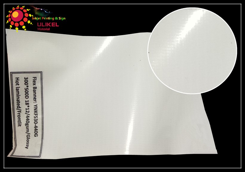 440g hot sell frontlit hot laminated high glossy super smooth flex bannerProduct Profile1. Width: 1m to 3.2m (Popular width: 1.6m/1.8m/2.2m/2.5m/3.2m) 6. This model information.: Item No.: YNKF530-400HG Gram: 440gsm Yarn: 500*300D 18*12 Finish: Glossy Techology: hot laminated Back: white Key Words: PVC Flex Banner, PVC Flex Banner Roll, 440gsm flex Banner, Banner flex, Banner roll, PVC sheet, PVC roll, Baniere, Lona, Canvas, Frontlit flex banner, backlit flex banner, Pana flex, 440g banner, 440g flex roll, high glossy flex, china star flex Product picturePictures taken from real 440g flex banner product Hot laminated flex banner is mostly liked by those market relatively not so cold, like South America, South-east asia, Africa, Some region of middle east etc. The advantage of hot laminated flex banner is it is very smooth and very glossy, presenting ideal printing effect, gradually taken place of cold laminated flex banner in those market which fit for it. Below is picture of cold laminated 440g and hot laminated 440g which are both sell very well in market and most popular among all of the grams. The color of the banner we can adjust, don't worry with this point. Video of working monment in factory: Loading Container for our customer